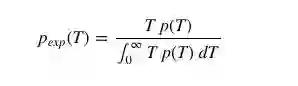 当乘客在随机时间点到达公交站时,他们经历的等待时间的概率既会受p(T)影响,又会受T本身影响:汽车到达间隔越长,乘客遇到较长等待时间的概率也会相应变大。