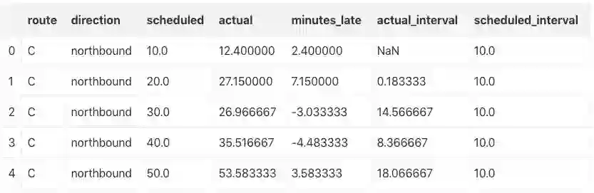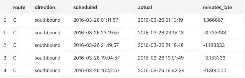 df = df[['route', 'direction', 'scheduled', 'actual', 'minutes_late']].copy()