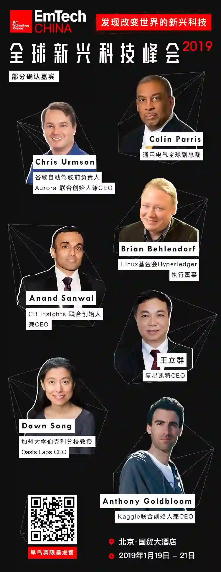 而现在,EmTech China 2019 的筹备工作才刚刚开始,DT 君手头的邀请嘉宾名单,基本上涵盖了所有热门前沿科技领域的标杆性人物,我们会在适当的时候定期对外公布确定出席的近 50 名演讲嘉宾名单,敬请关注!