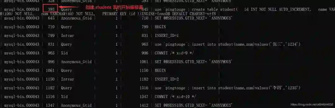 一张图截不全,我就分两张图了。同样我们使用 mysqlbinlog 来恢复 student 表,执行: