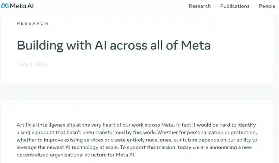 6 月 2 日,Meta 发布重大 AI 战略转型公告,宣布施行「去中心化组织结构」,过去四年担任 Meta(Facebook)人工智能副总裁的 Jerome Pesenti 将于本月晚些时候离职,因为该公司会将他的人工智能团队更紧密地整合到各个产品组中,而不再将人工智能研究机构作为一个具体组织。