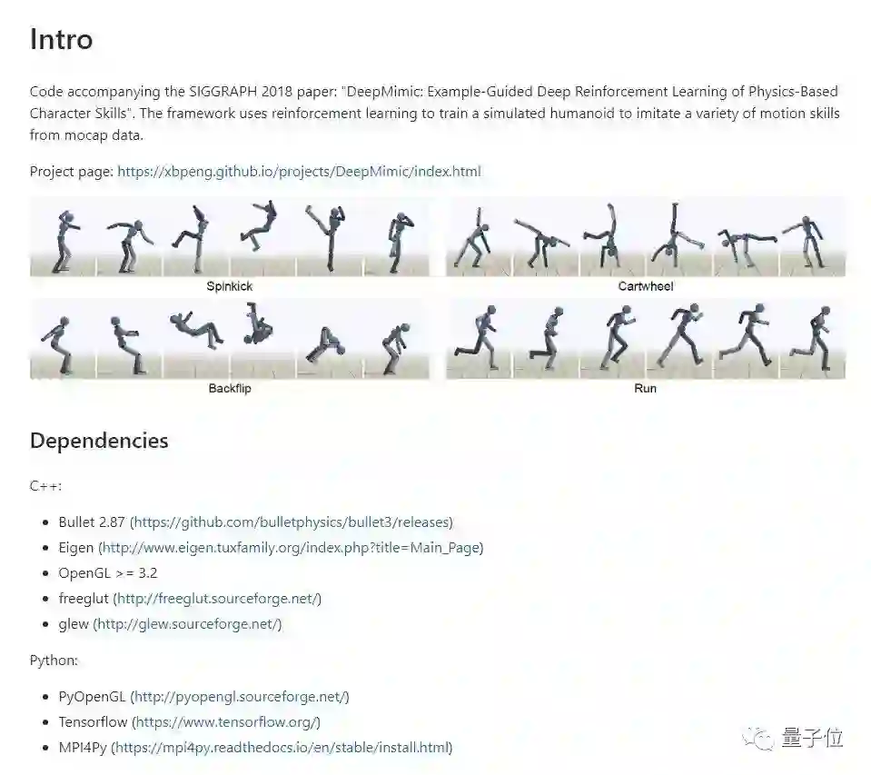 代码、数据、预训练的策略……所有你上手需要的一切,现在DeepMimic的第一作者、伯克利博士生Xue Bin Peng都开源出来了。传送门: