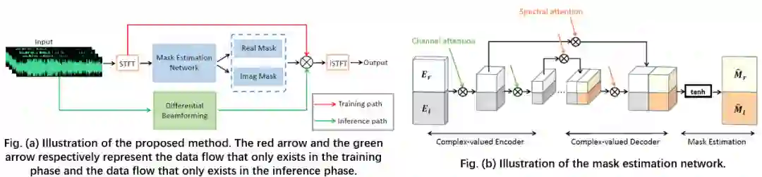 2 带定向麦克风的线性阵列的最小范数差分波束成形 Minimum-Norm Differential Beamforming for Linear Array with Directional Microphones 差分麦克风阵列技术(DMA,differential microphone array)或者差分波束成形技术(differential beamforming),由于具有较多的物理特性优势,尤其适合语音信号处理,近年来成为信号处理领域研究热点,同时在工业界也被广泛使用。 我们在差分麦克风阵列理论研究持续耕耘,继去年收录环形阵列差分波束论文之后,本次收录论文进一步在线性阵列上面拓展研究,利用指向性麦克风在线性麦克风阵列上进行差分波束设计,我们将提出的方法称之为线性差分指向性麦克风阵列(Linear differential directional microphone array (LDDMA)), 此方法扩展了线性差分阵列(linear differential microphone array,LDMA)的设计理论,通过理论分析证明,指向性麦克风组成的差分阵列可以在WNG(白噪声增益)和DI(指向因子)两个维度都比目前业界常用的全向性麦克风组成的差分阵列取得明显优势。同时也探索了指向性麦克风的陷零点和差分波束陷零点的数学关系。 3 基于神经网络掩码和注意力模型的实时多通道语音增强 Real-time Multi-channel Speech Enhancement Based on Neural Network Masking with Attention Model 近年来,虽然语音增强方法的性能得到了很大的提升,但是在远场和复杂的会议室环境中,基于麦克风阵列的语音增强方法仍然有一系列开放的问题需要进一步解决。 本文提出了一种实时的多通道语音增强方法,它由所设计的带注意力机制的复数值掩码估计网络和差分波束形成两个部分组成。 具体来说,在训练阶段,复数值掩码估计网络从多通道数据中估计出单通道目标掩码。在测试阶段,为了进一步抑制噪声,我们首先利用差分波束形成技术来抑制来自非目标方向的干扰信号,从而获得相对干净的频谱。然后将估计的掩码作用于差分波束成形所输出的频谱,作为最终的输出结果。 实验结果表明,本文所提出的方法在PESQ和MOS等指标上取得了优于现有技术的性能。 4 在混响环境中使用定向麦克风阵列进行 DOA 估计的 Cramer-Rao 下限 Cramer-Rao Lower Bound for DOA Estimation with an Array of Directional Microphones in Reverberant Environments 目前主流的DOA估计方法主要使用全向麦克风阵列拾取信号,利用麦克风间的相位信息进行DOA估计。本文针对混响环境下DOA估计误差大的问题,使用指向性麦克风阵列代替全向麦克风阵列,结合使用振幅和相位信息,增加DOA方法的鲁棒性,并利用克拉美罗下界(CRLB)进行理论分析。 本文通过建模混响信号为isotropic noise,建立混响的互功率谱密度矩阵,进而计算出对应的费雪信息矩阵,得到DOA估计的CRLB。通过理论分析,即对比CRLB发现对于线性阵列,基于指向性麦克风的误差下界低于基于全向麦克风的误差下界。同时利用SRP、MVDR和MUSIC三种DOA方法通过实验对比表明,基于指向性麦克风的RMSE低于基于全向麦克风的RMSE。 5 基于盲源分离的回声消除、去混响、声源分离统一框架 Joint Online Multichannel Acoustic Echo Cancellation, Speech Dereverberation and Source Separation 回声消除、去混响、声源分离是语音增强系统中的三个主要问题。传统系统通常采用的是级联架构,三个子任务分别由三个独立的模块完成,三个模块有各自的理论背景、目标函数和优化方法。级联架构的系统虽然具有灵活性,但是各自模块的任务迭代到最优,并不等于全局结果达到最优。本文将回声消除、去混响、声源分离这三个子任务都统一到了盲源分离的信号模型框架下,并使用auxiliary-function based in-dependent component/vector analysis (Aux-ICA/IVA)的方法进行求解。本文中的方法具有统一的信号模型、目标函数、迭代方法,实验证明这种统一框架有望比独立模块的系统具有更好的语音增强性能。 达摩院语音实验室论文下载链接:1.极低尺寸的设备端语音识别系统 Extremely Low Footprint End-to-End ASR System for Smart Device 论文链接:https://arxiv.org/abs/2104.05784 论文来源:阿里巴巴达摩院语音实验室独立完成2. EMOVIE: 中文普通话开源情感语音数据库 EMOVIE: A Mandarin Emotion Speech Dataset with a Simple Emotional Text-to-Speech Model 论文链接:https://arxiv.org/pdf/2106.09317.pdf 论文来源:阿里巴巴达摩院语音实验室与浙江大学合作完成 3. 联合文本和音素表征学习的口语理解预训练 Pre-training for Spoken Language Understanding with Joint Textual and Phonetic Representation Learning 论文链接:https://arxiv.org/pdf/2104.10357.pdf 论文来源:阿里巴巴达摩院语音实验室独立完成 4. 区分式自训练的标点预测 Discriminative Self-training for Punctuation Prediction 论文链接:https://arxiv.org/pdf/2104.10339.pdf 论文来源:阿里巴巴达摩院语音实验室独立完成 5. 联合声学特征和空间特征的会议场景混叠语音检测技术 Investigation of Spatial-Acoustic Features for Overlapping Speech Detection in Multiparty Meetings 论文链接:https://www.isca-speech.org/archive/pdfs/interspeech_2021/zhang21w_interspeech.pdf 论文来源:阿里巴巴达摩院语音实验室独立完成6. 带定向麦克风的线性阵列的最小范数差分波束成形 Minimum-Norm Differential Beamforming for Linear Array with Directional Microphones 论文链接:https://www.isca-speech.org/archive/pdfs/interspeech_2021/huang21_interspeech.pdf 论文来源:阿里巴巴达摩院语音实验室独立完成7. 基于神经网络掩码和注意力模型的实时多通道语音增强 Real-time Multi-channel Speech Enhancement Based on Neural Network Masking with Attention Model