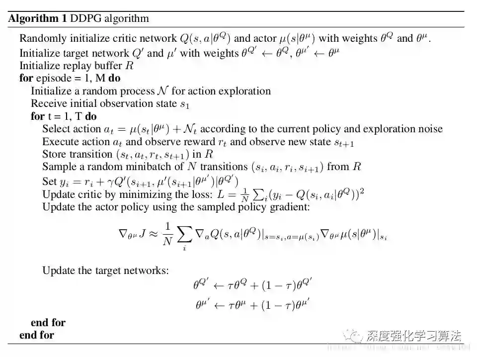 是在Q学习中使用Bellman方程学习的。 通过将链规则应用于从起始分布J相对于参数参数的预期回报来更新参与者,原理部分尽量少对公式,下面我们结合算法伪代码详细解释,: