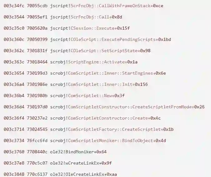 以下栈结构反映了在未打上CVE-2017-0199补丁的环境下样本的执行流程: