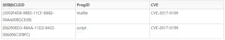 2017年4月,修复CVE-2017-0199时禁用了htafile对象和script对象:
