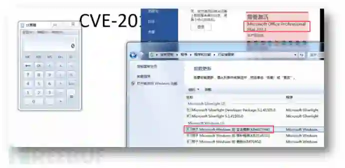 上例Office 2013 Pro Plus没有在微软给出的受影响版本中(补丁给的是Microsoft Office 2013 Service Pack 1),所以不能成功安装mso补丁,只安装了ole部分的补丁,两个补丁缺少一个漏洞可以成功利用。