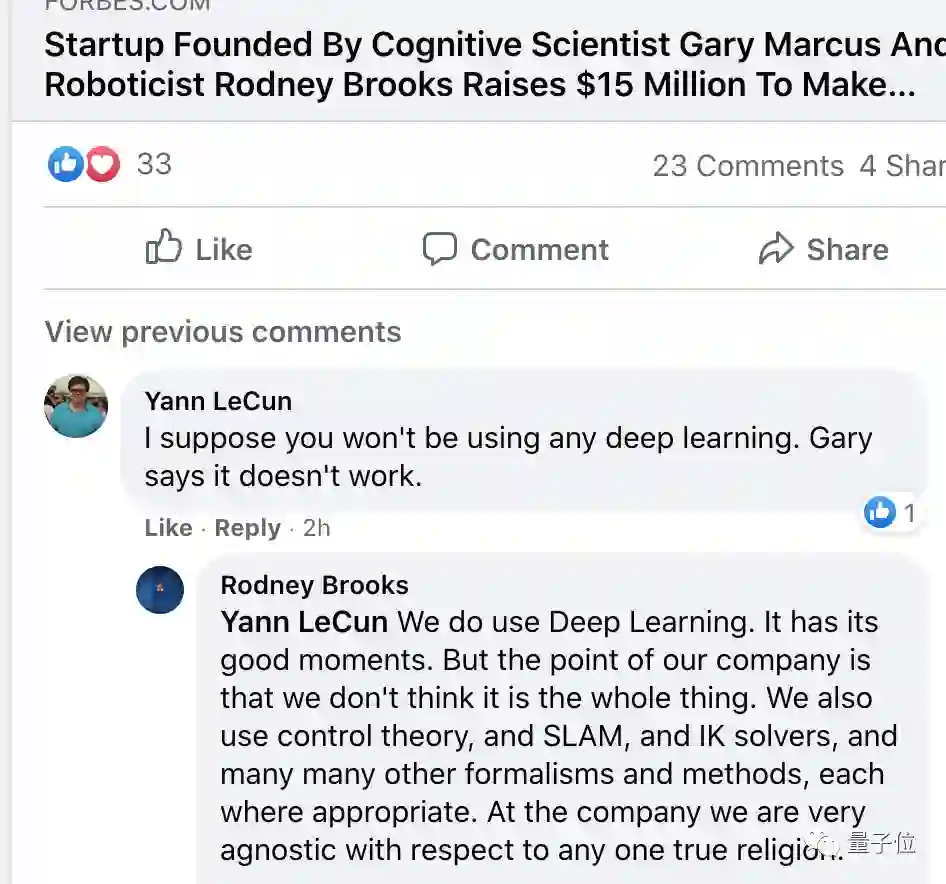 但这一次,可算是最好的机会了,而且LeCun是“明知故问”——在福布斯关于Robust.AI融资的报道中,早已写明了使用深度学习技术。
