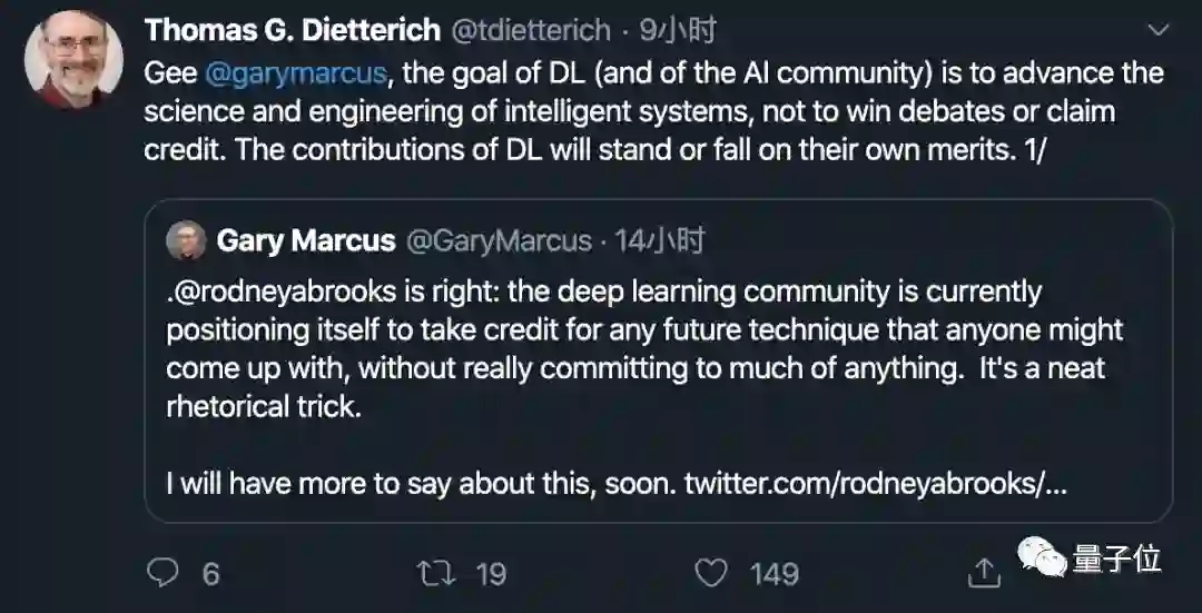 面对马库斯的「定性」质疑,只有AAAI前主席Thomas G. Dietterich在一番争论后,回应: