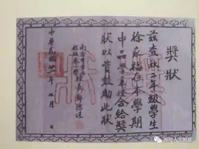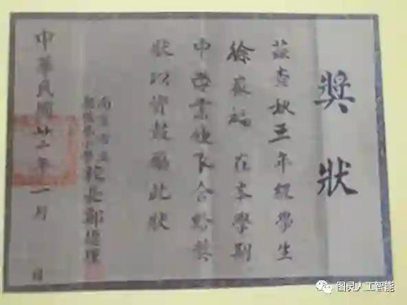 注:徐家福先生小学奖状