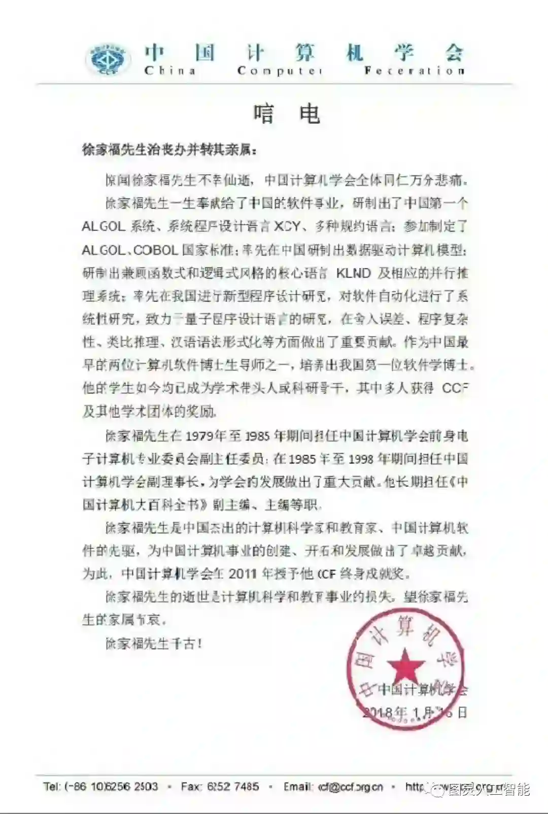 16日,计算机学会发布关于徐家福先生仙逝的唁电,我们搜集和整理了一些资料,以纪念徐家福先生为我国的计算机软件事业做出的巨大贡献!