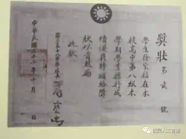 注:徐家福先生高中奖状