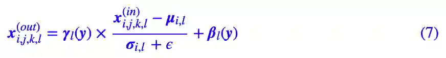 之所以说这样的 BN 是无条件的,是因为参数 β,γ 纯粹由梯度下降得到,不依赖于输入。相应地,如果 β,γ 依赖于某个输入 y,那么就称为条件 BN: