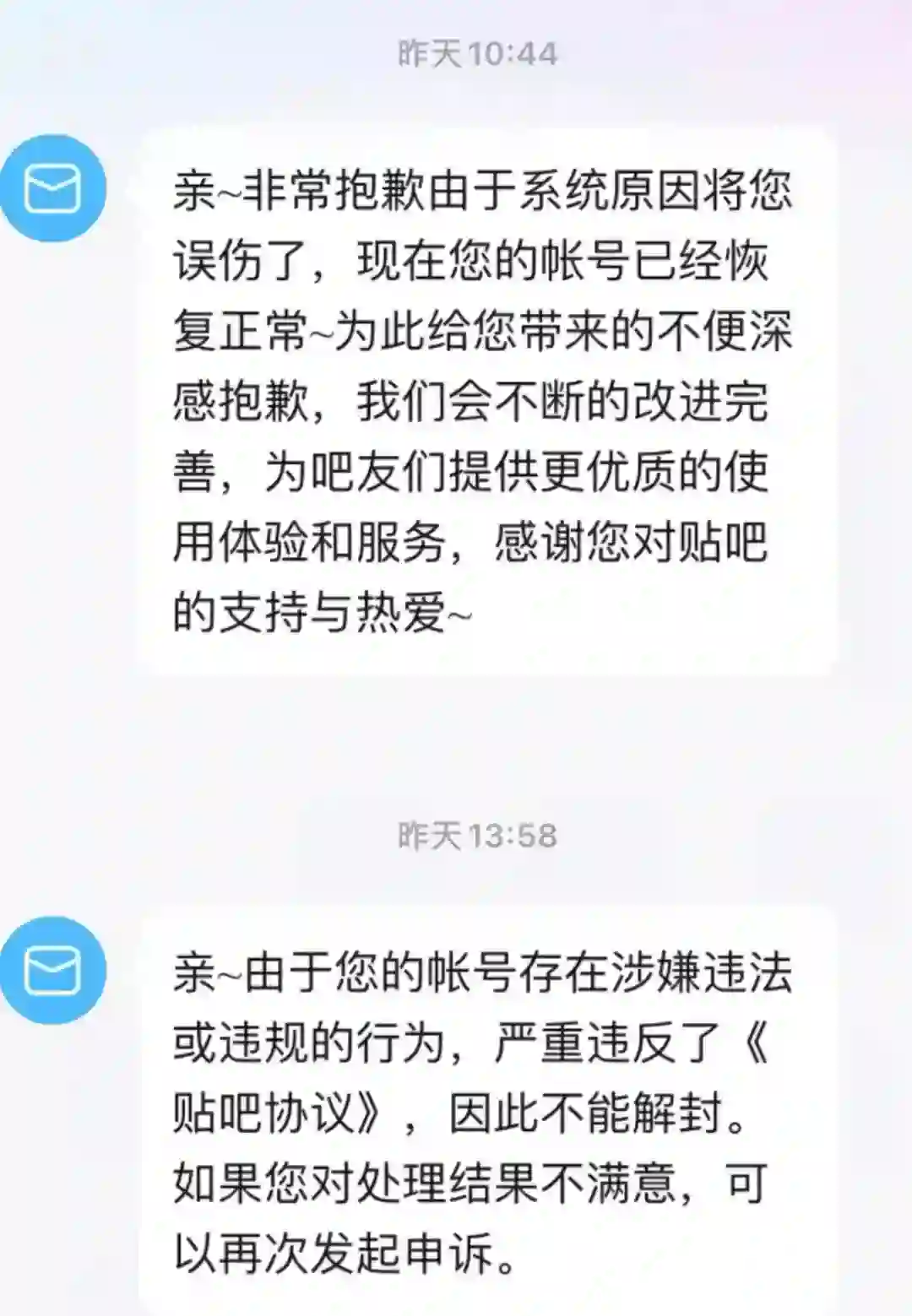 曾在贴吧官方工作的阿黑告诉毒眸,对贴吧内发帖的审核较为宽松,官方设立的三道审核机制分别是人审、机筛、风控,人审标准很难标准化、统一化,机筛则是因为贴吧代码写作已久,存在许多老代码卡bug,技术人员也无法解决。至于风控则是完全的黑箱,“我们官方发的活动都经常被风控删掉,不告诉你任何理由。”