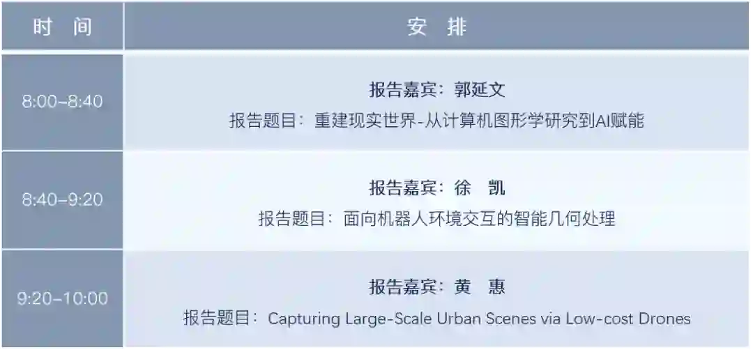 讲者简介:徐凯,国防科技大学教授。普林斯顿大学访问学者。西蒙弗雷泽大学客座教授。研究方向为计算机图形学,三维视觉,以及三维感知与建模在机器人领域的应用。主持国家自然科学基金优青、重点、面上等项目。共发表CCF A类论文50余篇,包括ACM SIGGRAPH/Transactions on Graphics论文近30篇。是国际上最早从事数据驱动三维几何建模与理解研究的学者之一,提出三维数据的可学习结构化建模与理解理论方法系统。成果已成功应用于三一重工机器人智能分拣产线、某发射场三维数字孪生建设、顺丰/邮政智能快递分拣机器人等,取得了良好的社会、军事、经济效益。现任图形学顶级期刊ACM Transactions on Graphics的编委。任中国图学学会理事、中国工业与应用数学学会理事、中国图象图形学学会三维视觉专委会副主任。获湖南省自然科学一等奖、中国计算机学会自然科学一等奖、军队科技进步二等奖等。