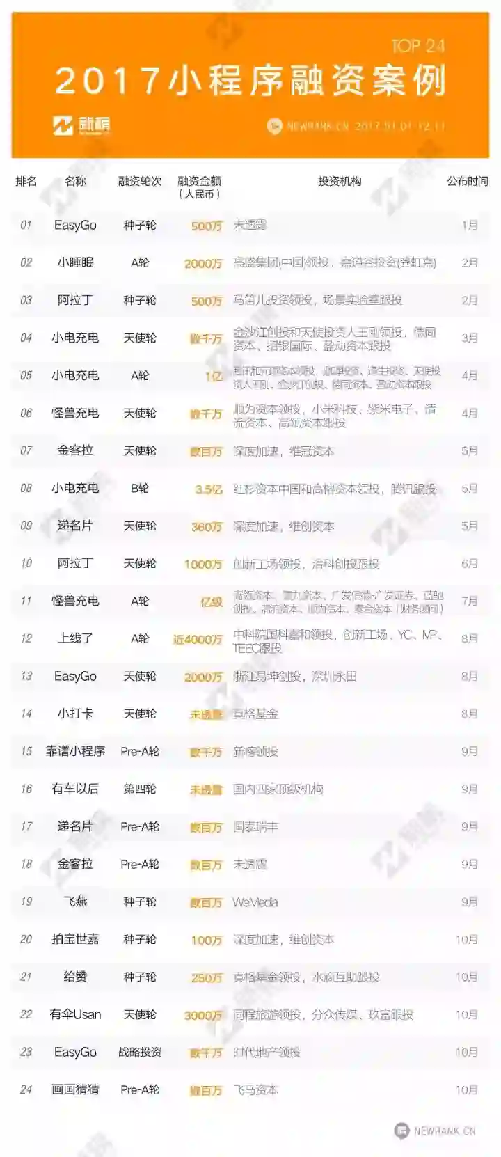新榜根据公开资料整理了过去一年小程序相关的融资案例,发现至少有7亿左右的资金押注到小程序相关创业者身上。