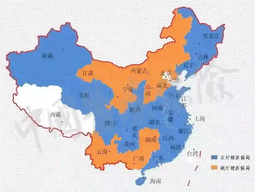 中国医疗保险杂志的统计显示,目前,内蒙古、甘肃、宁夏、山西、河北、云南、广西、湖南8省份医保局为副厅级机构,其余已经挂牌的21个省(区市)医保局皆为正厅级机构。