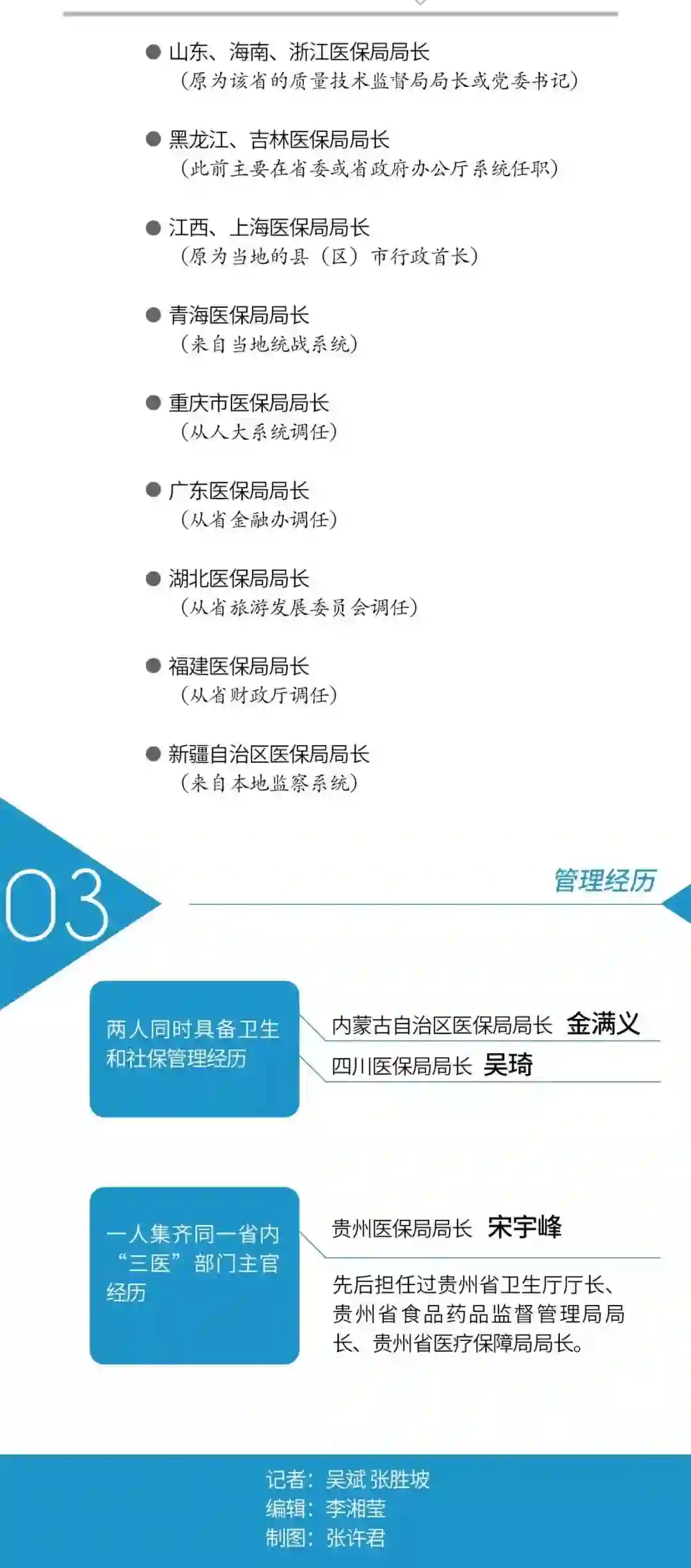 除了以上几种情况,还有地方医保局局长从人大系统、省金融办、省旅游发展委员会和省财政厅调任。