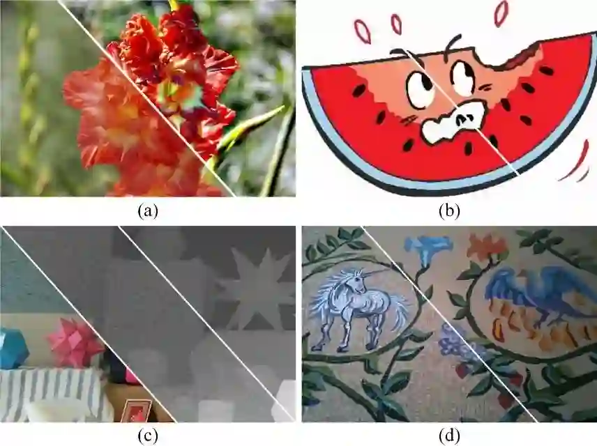 第二类任务包括卡通图压缩伪影去除,图像抽象画,仿铅笔画素描生成。这类任务要求能够去除细小结构的同时锐化显著图像边界,同时显著性边界的幅值不能被压缩。图1(b)展示了示例。