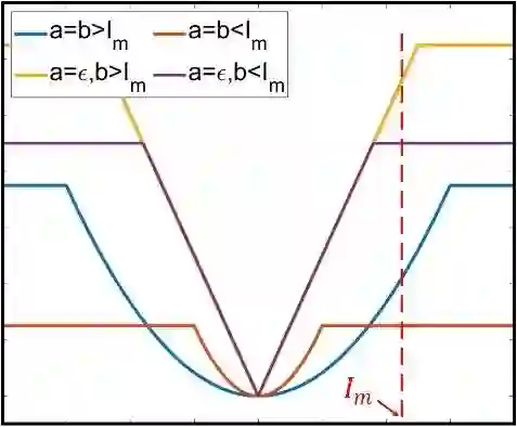 截断Huber在不同的参数设置下可以灵活的表现出不同的特性。假设输入图像的强度范围在