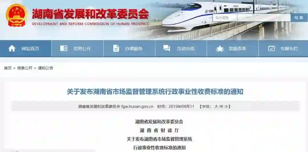 根据通知,此次调整有效期为5年,自2019年4月10日起执行,同时,《湖南省发展和改革委员会湖南省财政厅关于重新发布全省食品药品监督管理部门行政事业性收费标准的暂行通知》(湘发改价费〔2017〕208号)、《湖南省发展和改革委员会 湖南省财政厅关于重新发布湖南省质量技术监督系统行政事业性收费标准的通知》(湘发改价费〔2014〕1039号)一律废止。