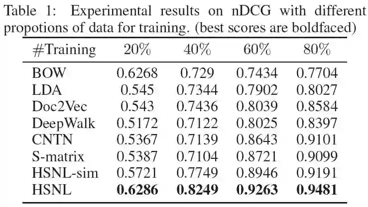 HSNL试用了nDCG、Precision和Accuracy三种指标来对算法进行评价,在每种指标下,效果都不错。