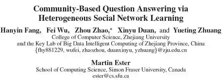 【AAAI2016 论文】Community-Based Question Answering via Heterogeneous Social Network Learning