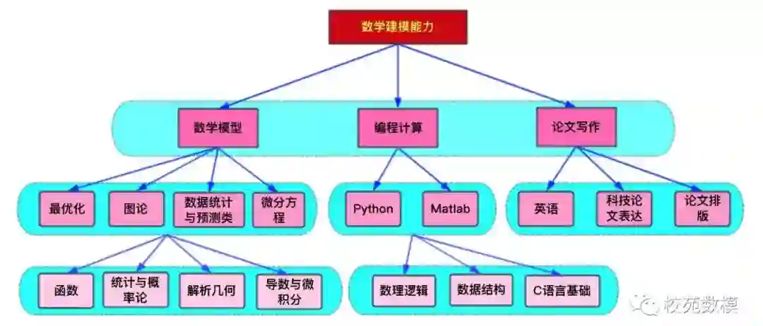 通过数学建模能力树模型可以看到,数学建模需要数学思维能力、编程思维能力和写作表达能力。参加数学建模活动不仅能增强这些能力,而且参加数学建模竞赛获得奖项对于自主招生、申请国外学校都是有很强的助力。不仅如此,学习了数学建模后对于其他科技创新类竞赛、论文发表、专利写作都是有非常大的帮助。