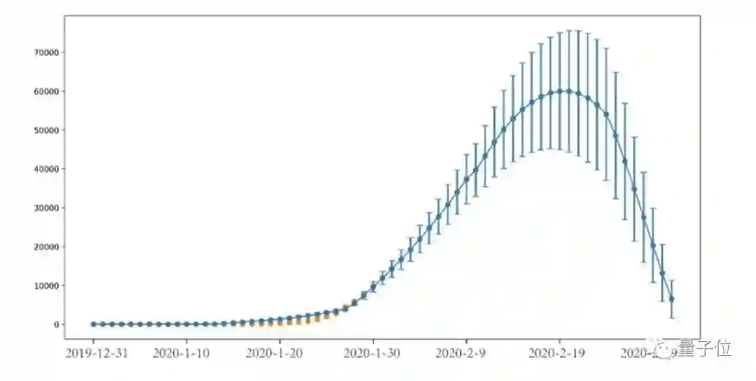 模型的预测结论:基于1月23日以后采取的封城、隔离措施,以及越来越有力的社区级监控措施,我们通过对现有隔离、检测、治疗手段的估计(最乐观的估计和一般估计),并且考虑到春运返程客流的影响,预测全国感染人数将在2月12-19日内达到峰值,在2月16日前后出现疫情拐点,累积确诊人数最高值为4.2万-6万,之后逐渐降低并最终平息。