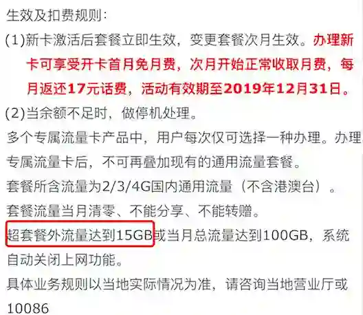 套餐外流量最多 15GB