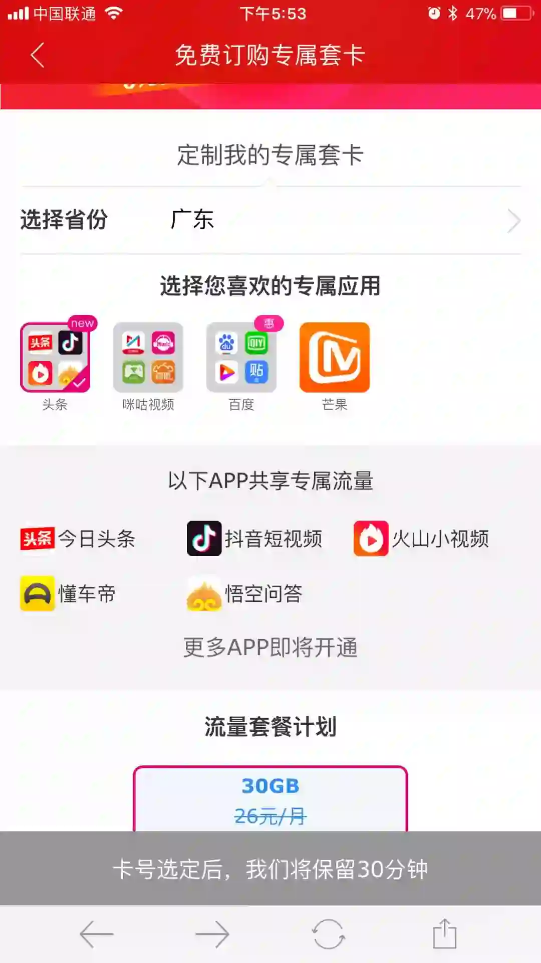 免流流量一个月只有 30G