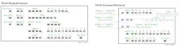 再举个例子,使用 Thrift 做同样的序列化,采用 Binary Protocol 和 Compact Protocol 的大小是不一样的,但是 Compact Protocol 和 PB 虽然序列化的编码不一样,但是同样是非常高效的。