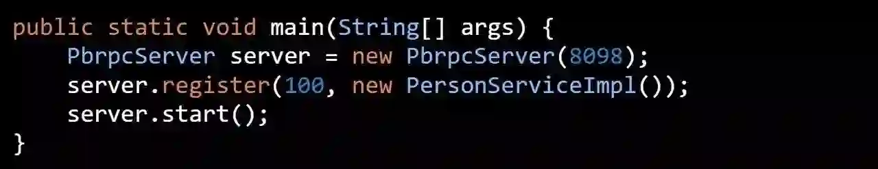 至此,服务端开发完毕,可以看出使用一个完善的 RPC 框架,只需要定义好 Schema 和业务逻辑就可以发布一个 RPC,而 I/O model、线程模型、序列化 / 反序列化、协议结构均由框架服务。