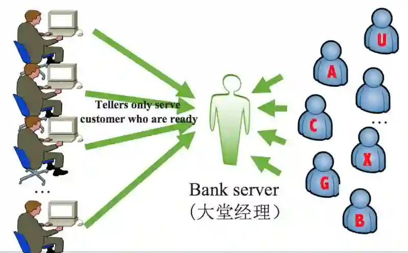 这里不细说每种 I/O 模型。这里举一个形象的例子,读者就可以领会这四种 I/O 的区别,就用 银行办业务 这个生活的场景描述。