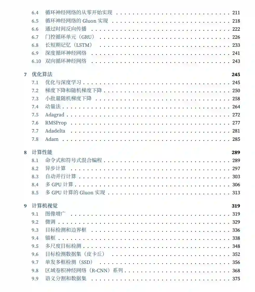 • 第三部分(第 7 章⾄第 10 章)讨论计算性能和应⽤。第 7 章评价了各种⽤来训练深度学习模型的优化算法。第 8 章检验了影响深度学习计算性能的⼏个重要因素。第 9 章和第 10 章分别列举了深度学习在计算机视觉和⾃然语⾔处理中的重要应⽤。这部分内容可供你根据兴趣选择阅读。