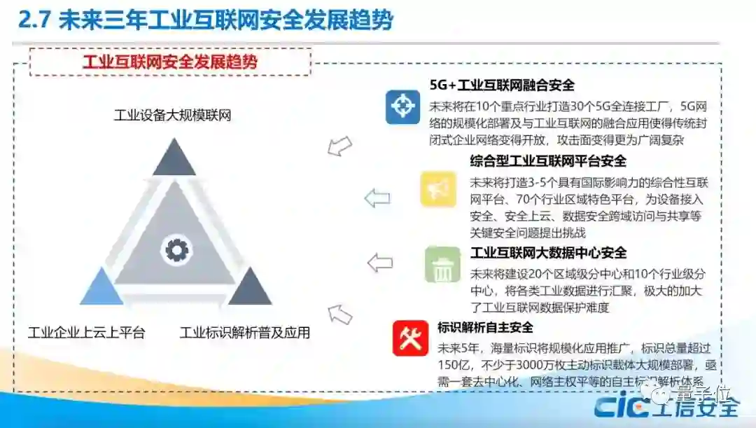 然后分析了工业互联网所面临安全威胁:大量的漏洞、通过工业互联网平台攻击的可能性、供应链安全风险、标识解析体系的安全风险等,然后通过一些具体工作中碰到案例,用详实的数据和案例给大家介绍了工业互联网安全的状况,提出以五层三网六要素为视角,以云网边端为核心,形成分层部署。纵横联动的工业互联安全体系架构。