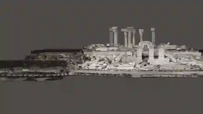 (GigaMVS实现了圆明园遗址西洋楼场景的大规模三维重建,场景占地约7200平方米,其中“大水法”等局部对象的几何纹理细节清晰。)