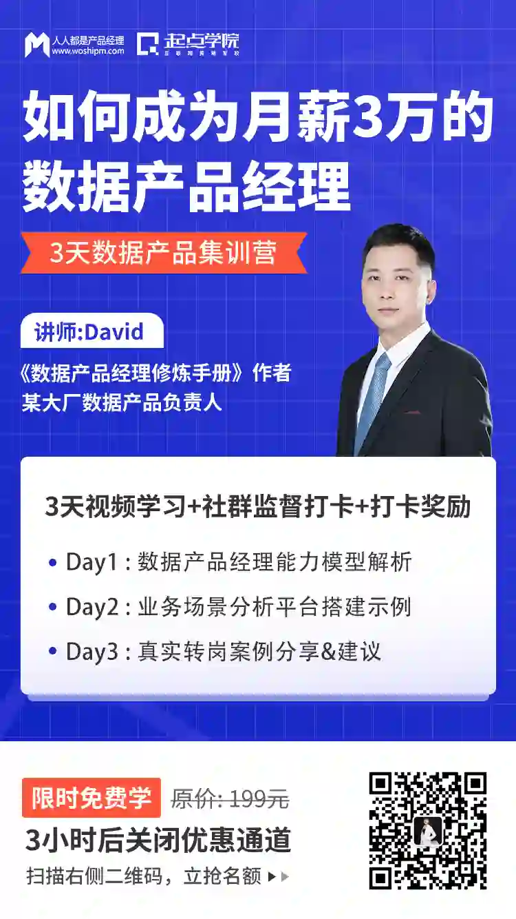 基于此,起点学院联合一线大厂数据产品负责人@David,发起《如何入门数据产品经理》3天学习计划。