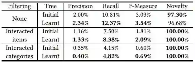 另外,树结构作为一种索引也是可以学习的,从而让其中的商品和概念可以被更快地提取到;这同时也有助于模型的训练。作者们也提出了一种树结构的学习方法,可以合并训练神经网络和树结构,见下文。