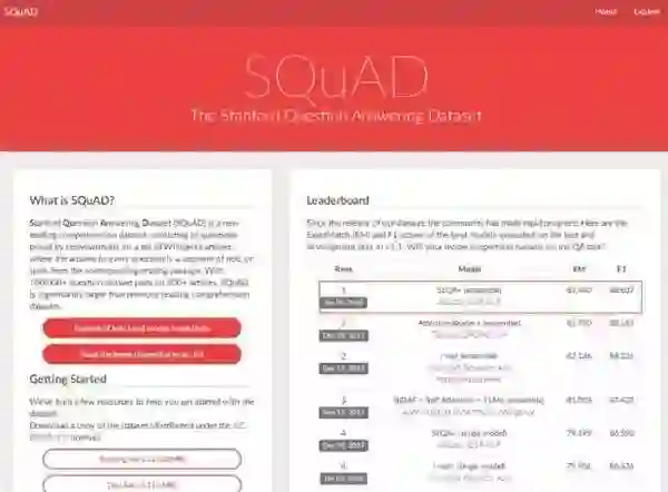SQuAD比赛构建了一个大规模的机器阅读理解数据集(包含10万个问题),文章来源于500多篇维基百科文章。