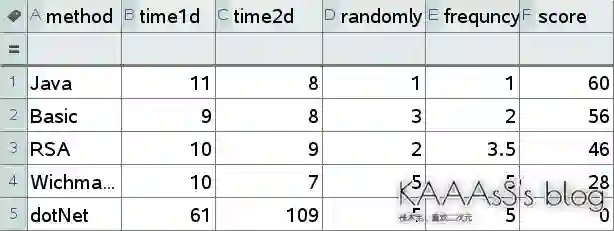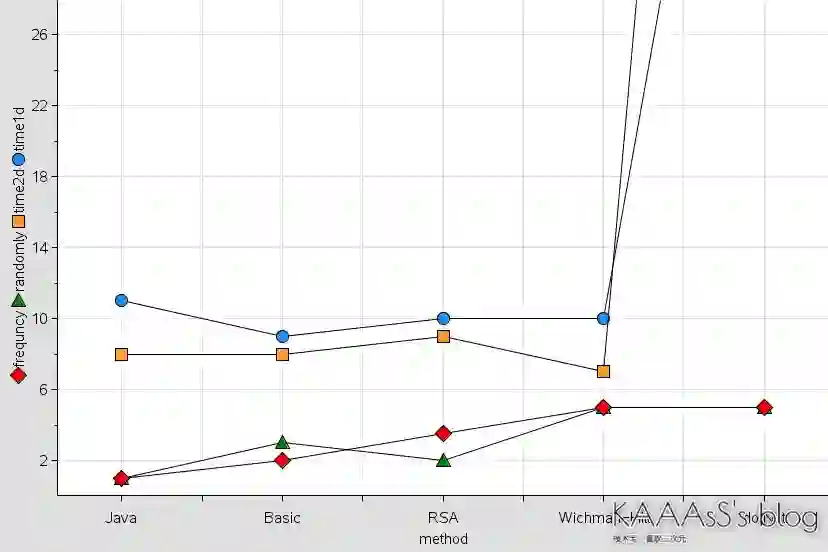 看来Java的综合实力不差。同样可以在图表中看到实际上Basic的效率是最好的,然而与Java的差距也只有1毫秒。但是Java的质量要好上不少。RSA质量不错,基本和Basic持平,但是速度上还是差了一丢丢。