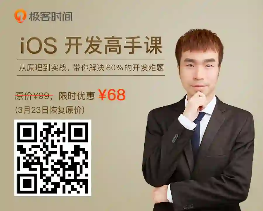我将在专栏中,通过 30+ iOS 开发实战场景剖析,围绕 iOS 开发在各个阶段(开发、调试测试、发布和上线)中遇到的问题展开,带你一起剖析问题、解决问题。