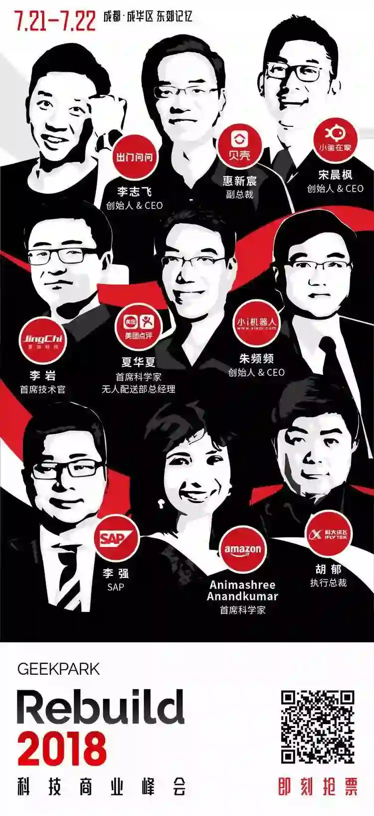 现在,你有一个机会,与亚马逊 AWS 首席科学家 Animashree Anandkumar、《区块链革命》的作者 Alex Tapscott、美团点评首席科学家夏华夏、贝壳找房副总裁、如视事业部总经理惠新宸、欢聚时代 CEO 李学凌、蔚来汽车创始人&董事长李斌和锤子科技创始人&CEO 罗永浩面对面,听 Google、Udacity、小米、京东和大疆的新想法。他们将齐聚极客公园 Rebuild 2018 大会,为我们带来他们在新技术与产业的纵横中看到的下一个创业爆发的交点。