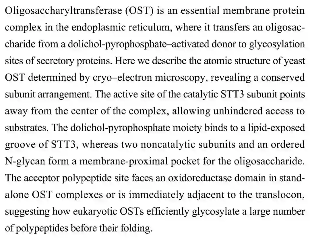 酵母寡糖转移酶(OST)复合物结构帮助理解真核 N-糖基化