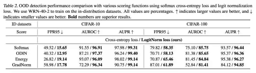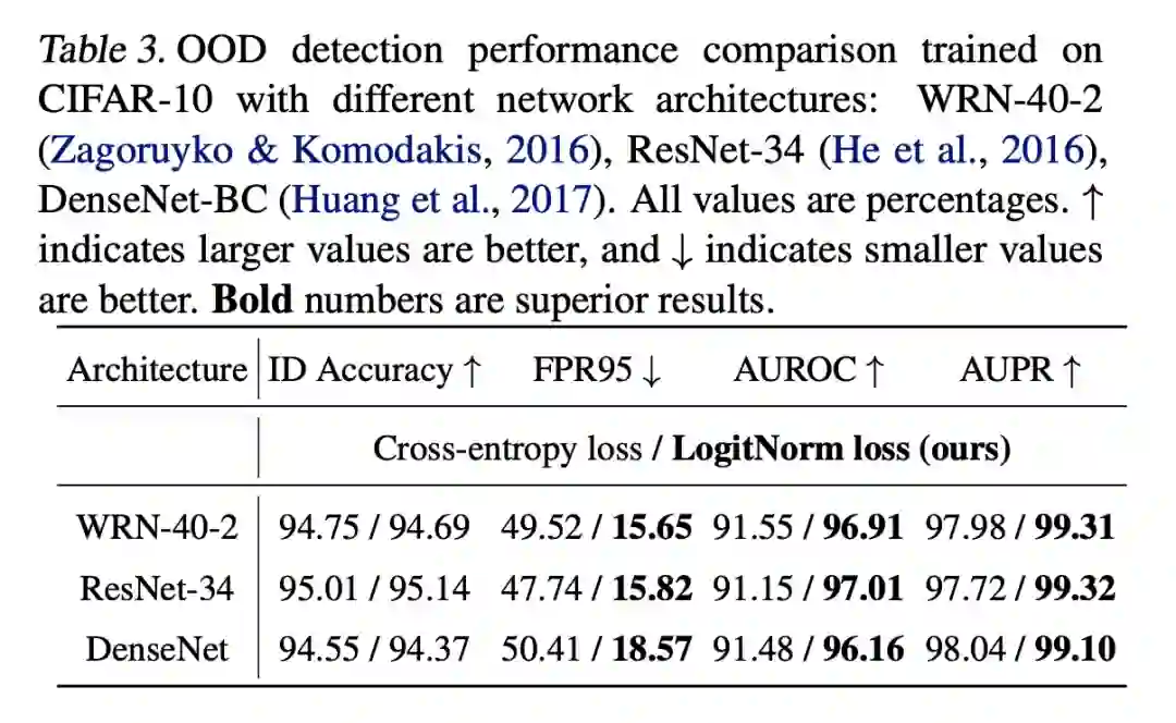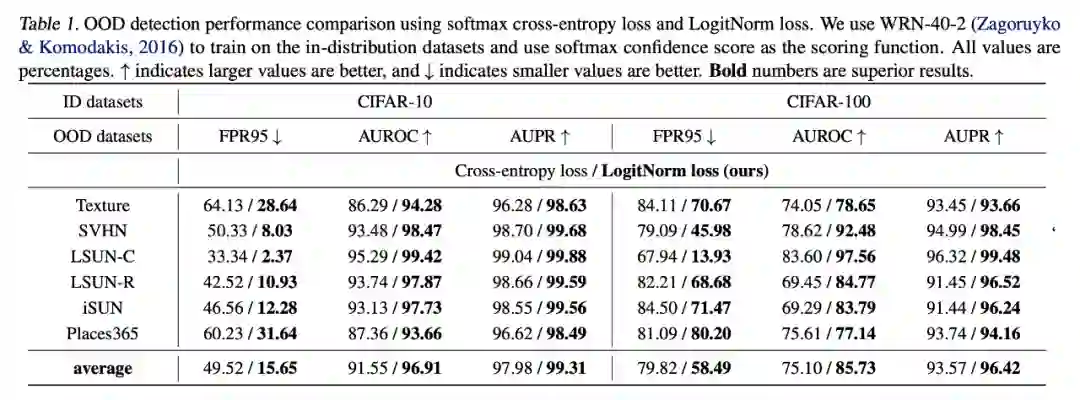 这里采用最基本的 MSP 分数做 OOD 检测,可以看到 LogitNorm 在不同数据集上提升比较明显。