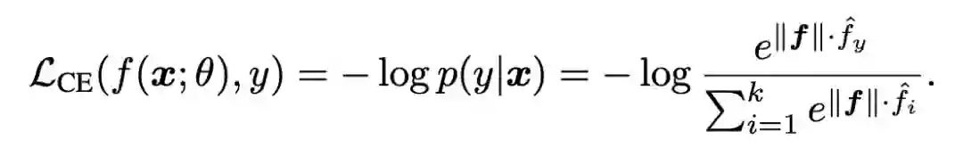 换句话说,Logit 向量的大小增大,将造成更大的 softmax 置信度分数,但是不影响分类结果接下来分析对交叉熵训练目标的影响,如果训练目标采用下面这个交叉熵损失,那么训练过程中损失值不断减小,会使得 Logit 范数不断增大,由上述推论(2)可知会得到更高的 softmax 置信度分数。