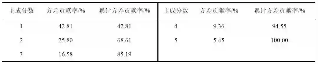 将筛选出来的5 个指标进行主成分分析(表3)。通过主成分分析发现,前3 个主成分的累计贡献率为85.19%,故前3 个主成分可以表达原来主成分的信息,由原来的5 个指标转化为3 个新指标,起到了降维的作用。通过SAS输出前6 个主成分的特征向量(这里不列出),得出前3 个主成分与各个指标之间的线性关系,采用各个主成分与各个自变量之间的关系式计算各个主成分得分。