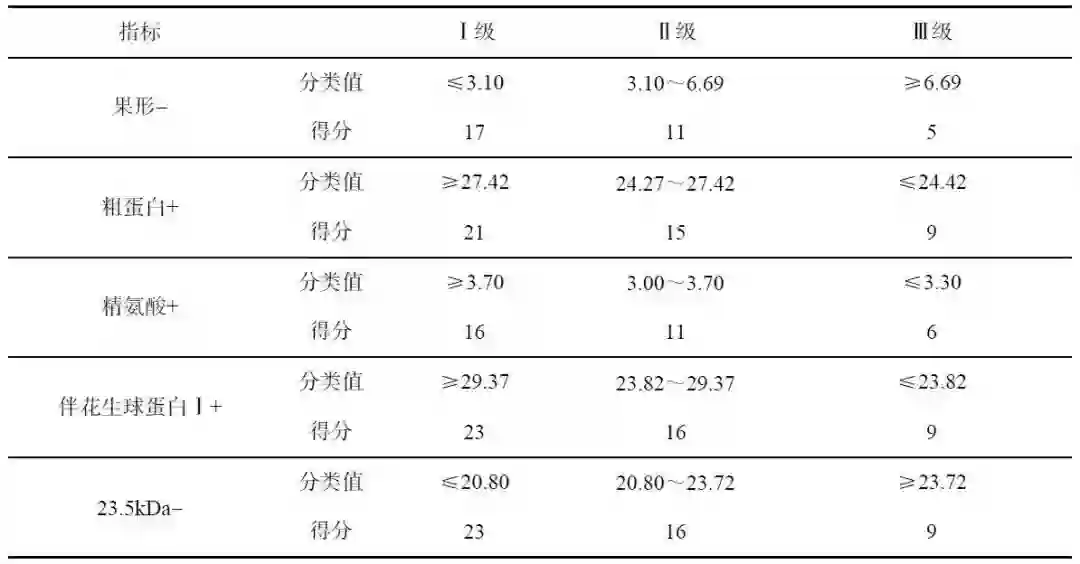 1. 适宜加工凝胶型蛋白质花生品质评价标准(理论分析)