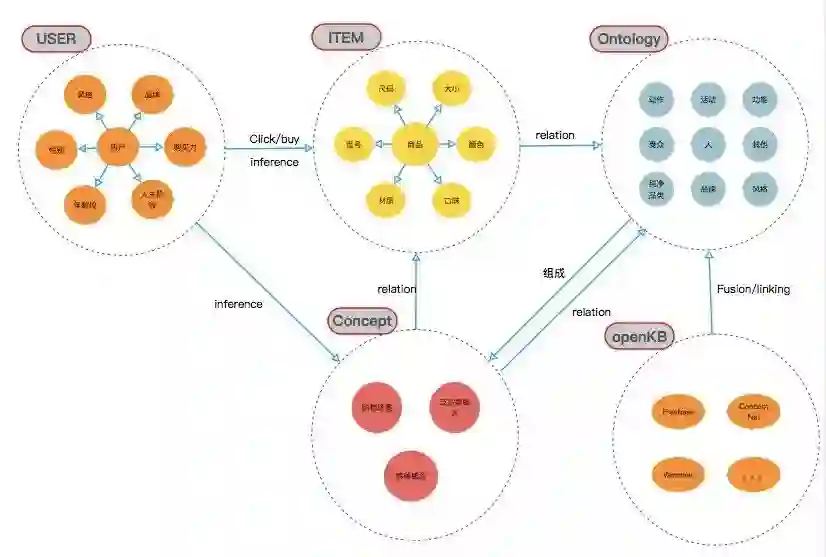 User:基于图谱构建大规模的concept、vocabulary和item attributes,可以更加精准的理解用户需求、推理用户需求。