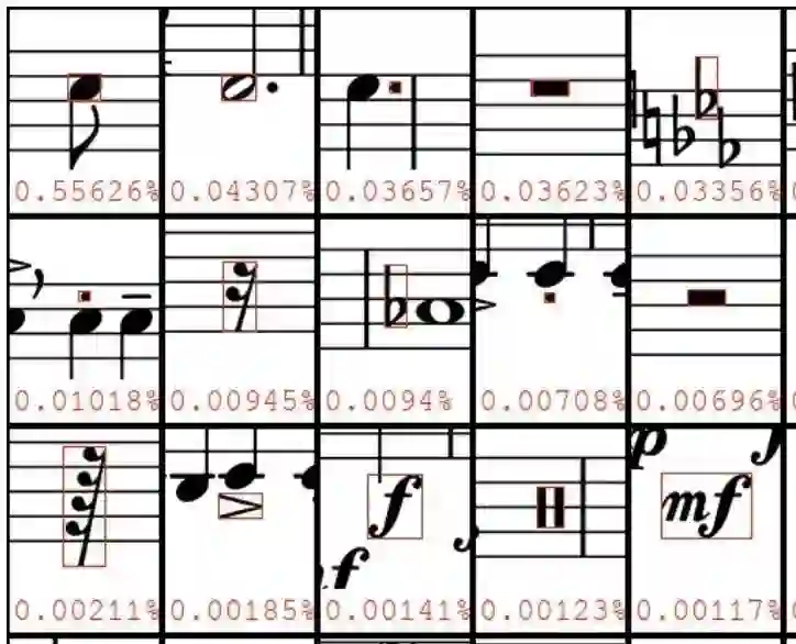 DeepScores 数据集的目标是推进小物体识别的最新技术,并将物体识别问题置于场景理解的背景下。DeepScores 包含高质量的乐谱图像,分为 300 0 000 张书面音乐,其中包含不同形状和大小的符号。拥有近一亿个小对象,这使得我们的数据集不仅独一无二,而且是最大的公共数据集。DeepScores 带有用于对象分类、检测和语义分割的基本事实。因此,DeepScores 总体上对计算机视觉提出了相关挑战,超出了光学音乐识别 (OMR) 研究的范围。